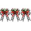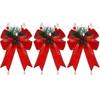 3 Pcs Christmas Bows with Pine Cones Needles Xmas Velvet Bow Red Ribbon Christmas Tree Wreath Decoration Indoor Crafts DIY Decor