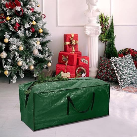 This heavy-duty Christmas tree storage bag offers generous capacity to fit entire trees without the need for compression or dismantling, simplifying post-holiday cleanup.