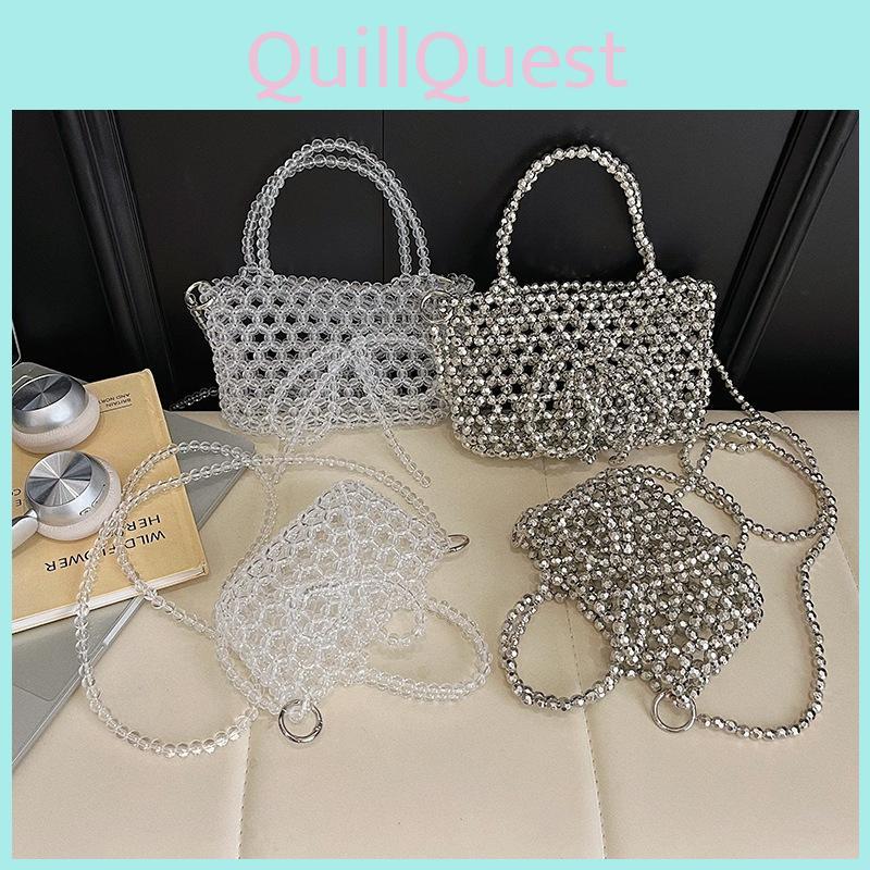 Transparent Bead Handbag With Bow Design And Top Opening For Urban Outings