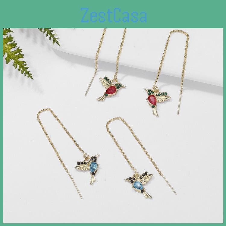 Hummingbird Animal Earrings With Rhinestone Decor For Unique Party Wear