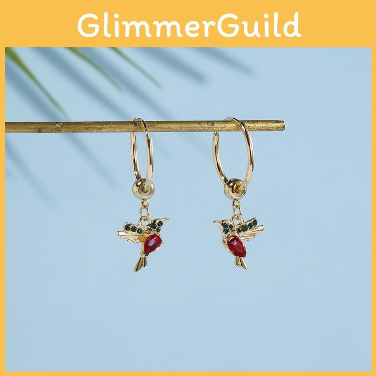 These bird earrings feature a combination of alloy and water materials, offering durability and a touch of sparkle, with a sleek hoop design showcasing a retro hummingbird motif. Available in blue and red, they are ideal for gift shops and special occasions. Wipe clean with a dry cloth to maintain their shine.