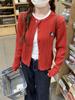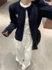 Navy Blue White Round Neck Twist Embroidered Knitted Sweater for Women's Spring and Autumn Small Design Sweater Jacket