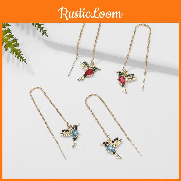 This pair of hummingbird-inspired ear lines features alloy and water sparkle detailing, delivering a striking visual effect, the earrings use copper eartips for durability and comfort. Ideal for enhancing casual or fashionable outfits, they offer a stylish accent for daily wear. Wipe with a soft cloth to maintain their shine.