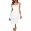 Spring Summer White Black Wine Red Women Slim Dress Split Pleated Velvet Strap Evening Dresses