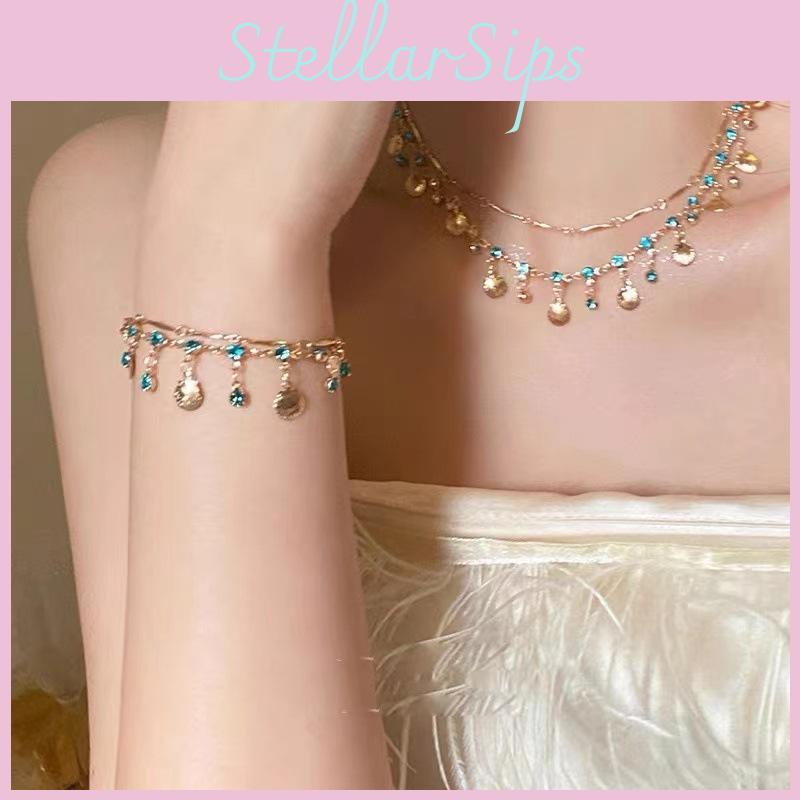 Exotic Ethnic Blue Shell Necklace With Sparkling Zircon Artistic And Vintage Look
