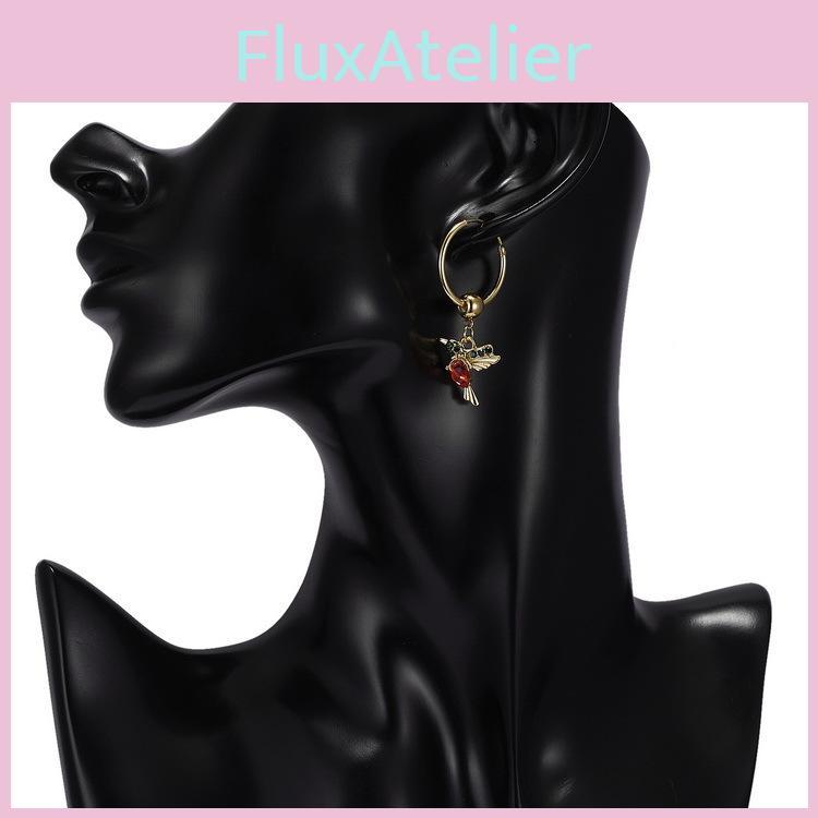 These bird earrings feature a combination of alloy and water materials, offering durability and a touch of sparkle, with a sleek hoop design showcasing a retro hummingbird motif. Available in blue and red, they are ideal for gift shops and special occasions. Wipe clean with a dry cloth to maintain their shine.