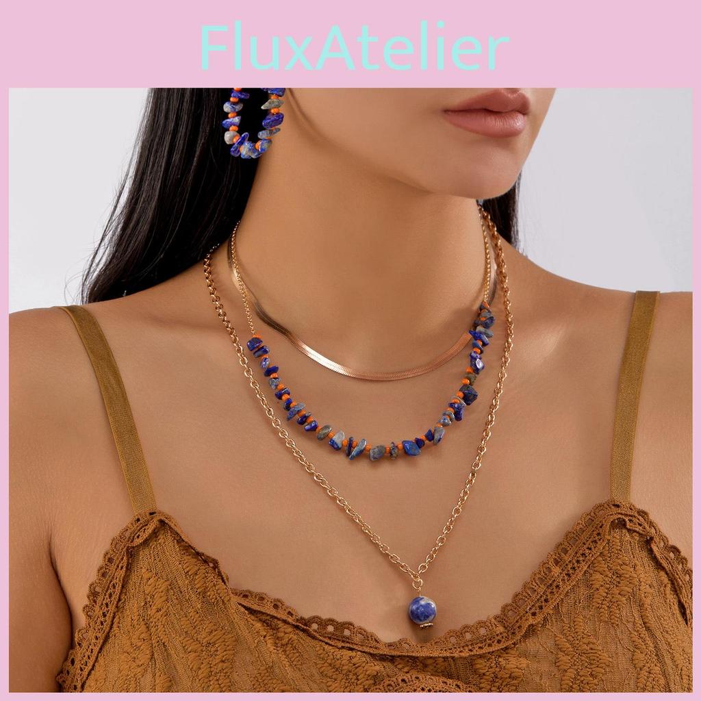 Unique Geometric Crushed Stone Collar Necklace And Drop Earrings Set For Women With Multilayer Style