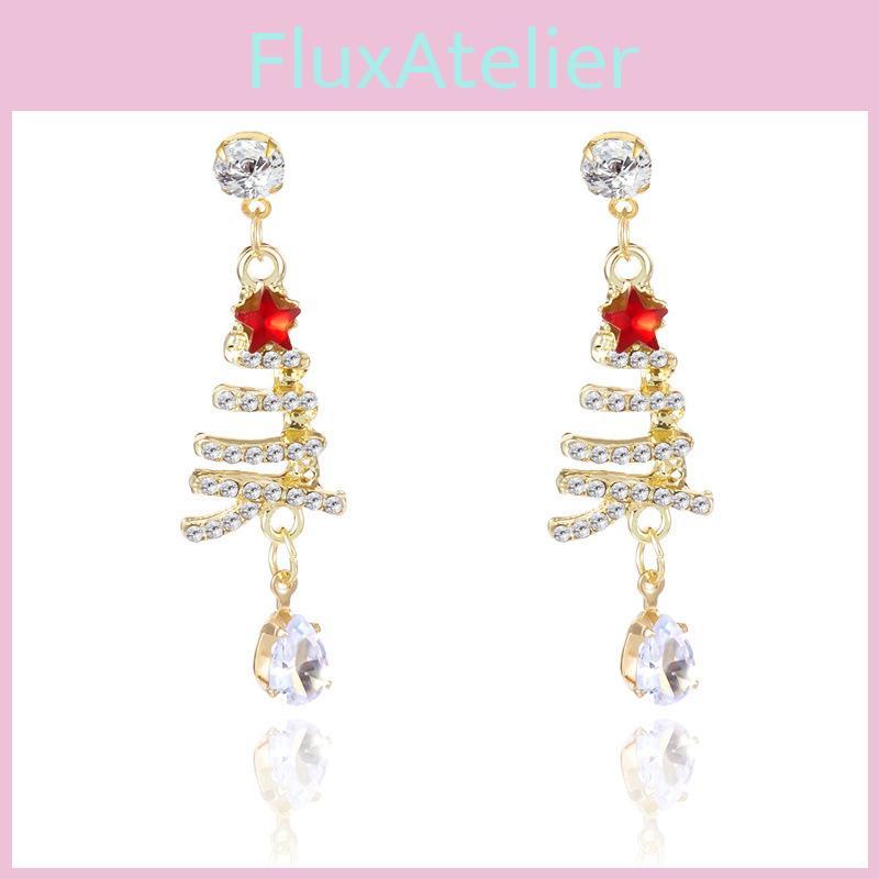 These Christmas tree and star drop dangle earrings feature a trendy design made from zinc alloy with electroplated finishes in gold and silver tones, offering a lightweight feel for comfortable wear. The ceramic ear pins ensure a secure fit. Perfect for holiday celebrations, they complement festive outfits. Wipe clean with a damp cloth to maintain their shine.