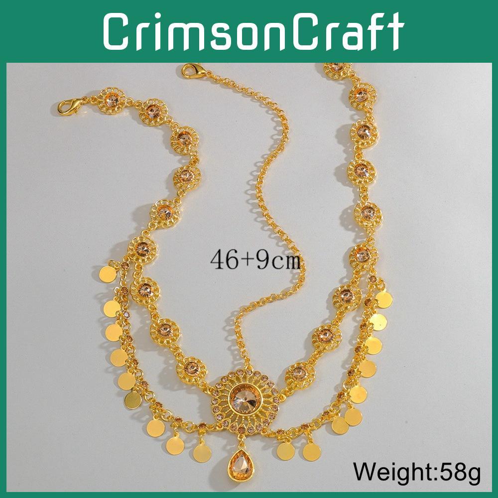Elegant Simulation Gemstone Decor Women Golden Headpiece With Tassel Design For Travel And Occasion