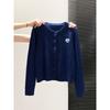 Vintage Navy Blue Twist Knitted Cardigan Jacket Women's Spring and Autumn Niche Love Embroidered Single-breasted Sweater Top