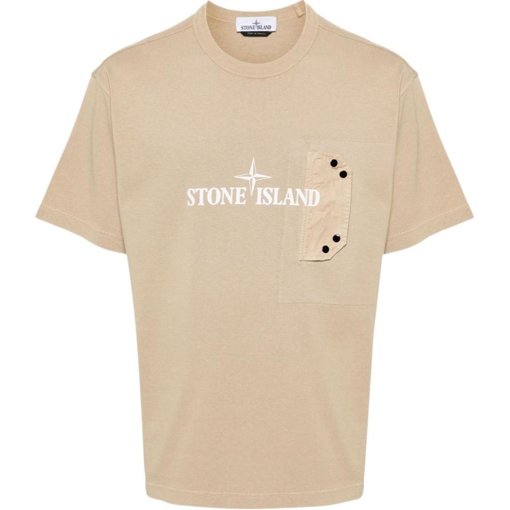 STONE ISLAND Logo Print Loose Fit Drop Shoulder Short Sleeve T-Shirt Men Tops Beige 811521079-V0094