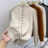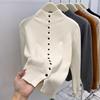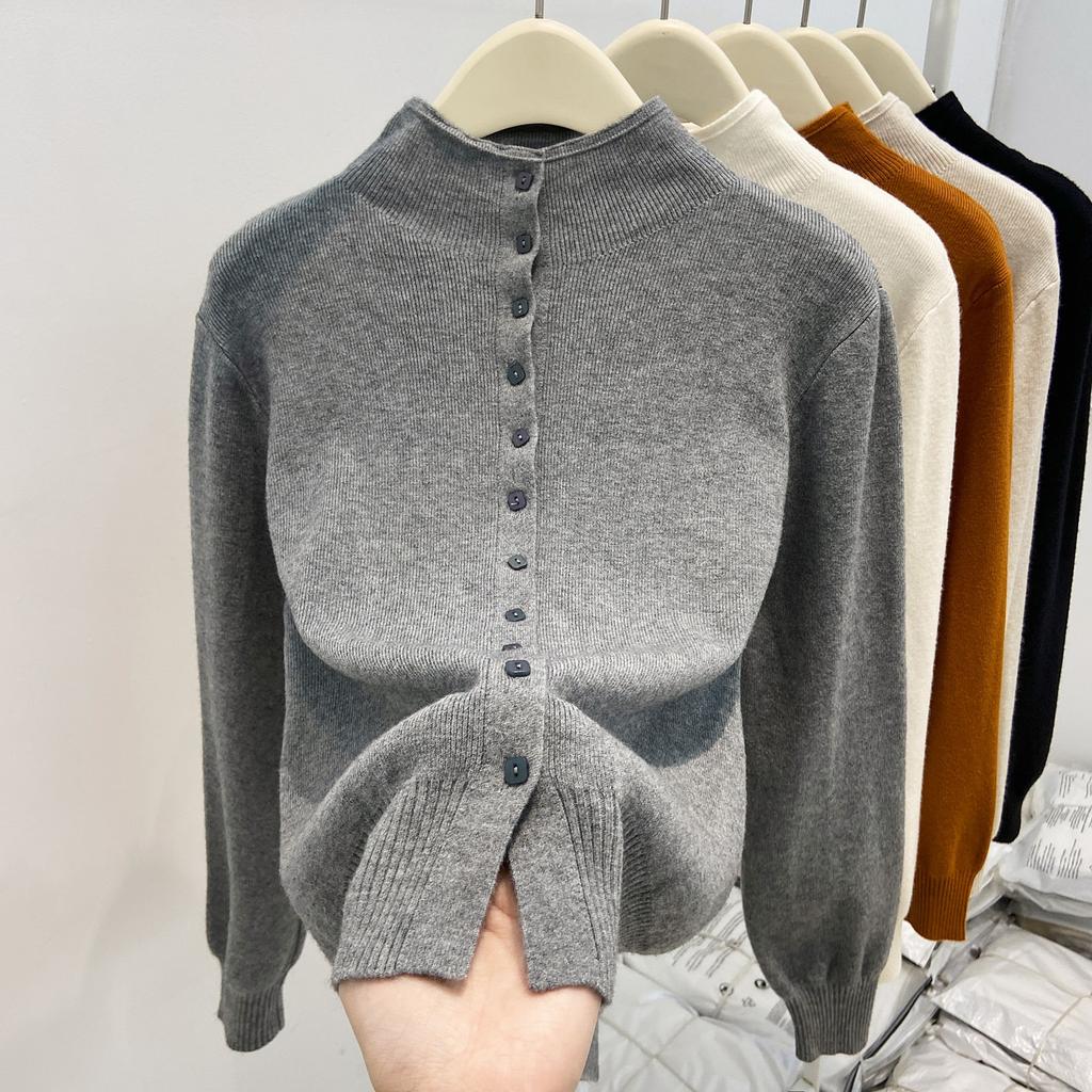 Premium Gray Autumn and Winter Stacked Wear Semi-turtleneck Long-sleeved Sweater Lazy Style Loose Casual Knitted Cardigan Top Women's Outfit