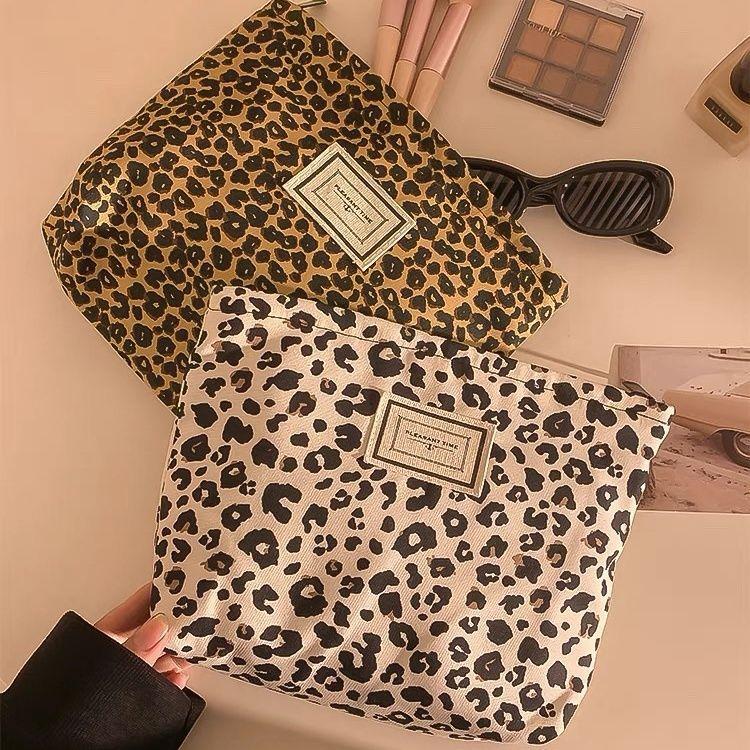 Leopard Print Canvas Makeup Bag For Women, Portable Travel, Skincare Products, Lipstick Storage Bag, Toiletry Bag