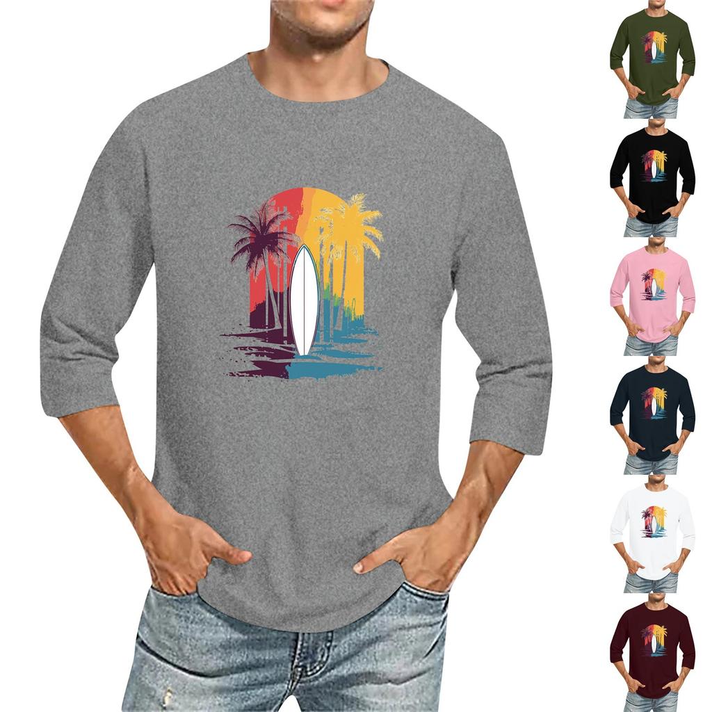Men's Solid Color Round Neck Three Quarter Sleeve Top T-shirt