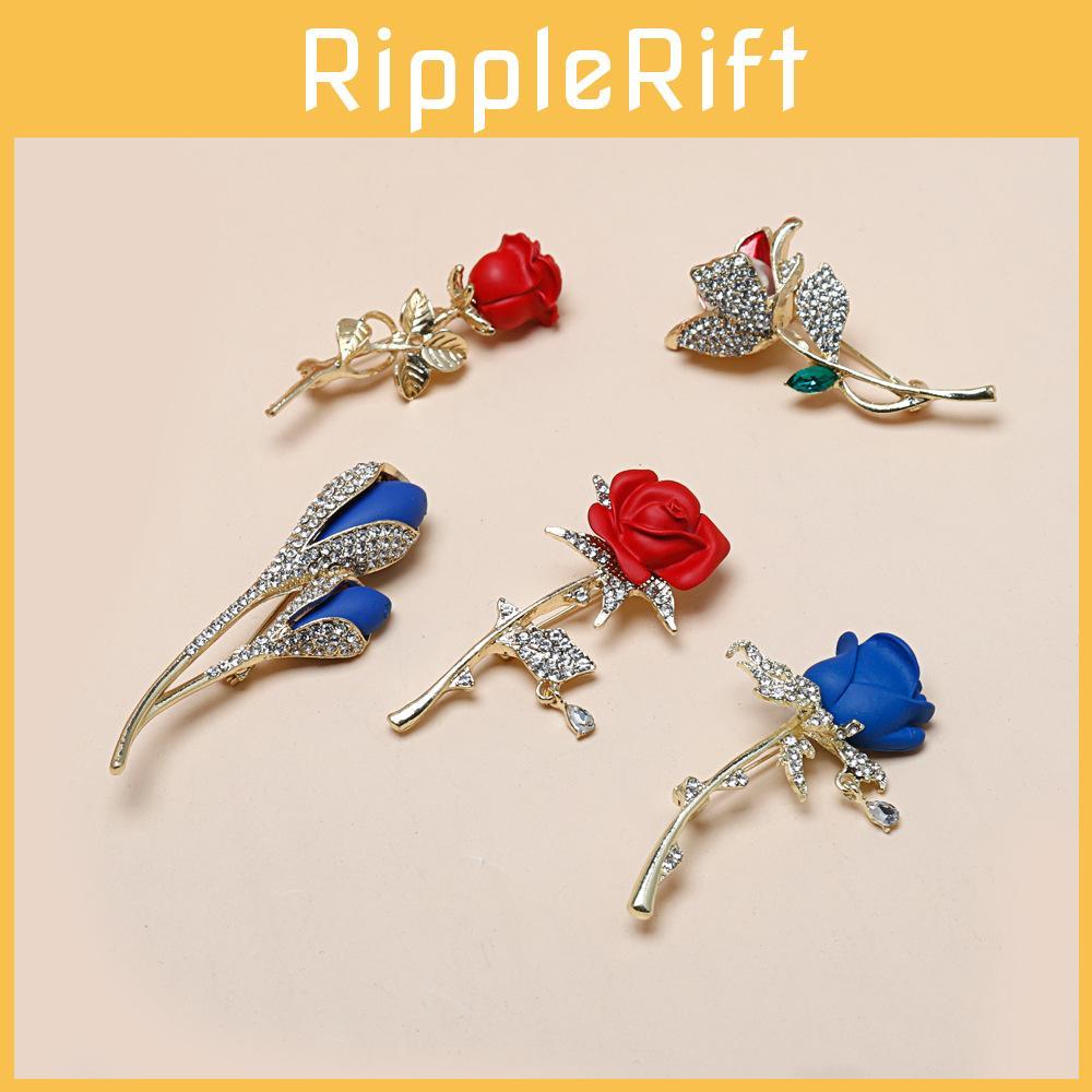 This floral-themed brooch features a sleek alloy construction with electroplated finish, showcasing elegant rose designs in red and blue. Measuring approximately 3 cm in diameter, it offers a lightweight yet durable accessory. Suitable for daily wear or special occasions, it enhances any outfit with a touch of sophistication. Easy to maintain, wipe clean with a damp cloth.