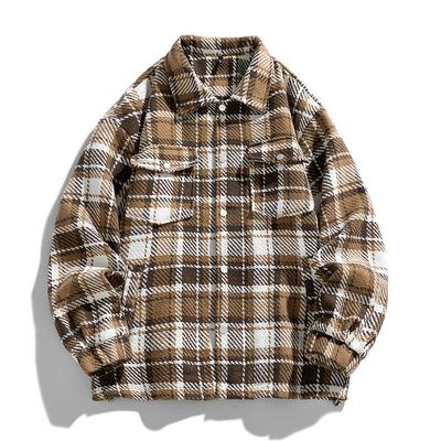 New Spring Japanese Retro Men's Loose Shirt Furry Checked Casual Shirt Jacket