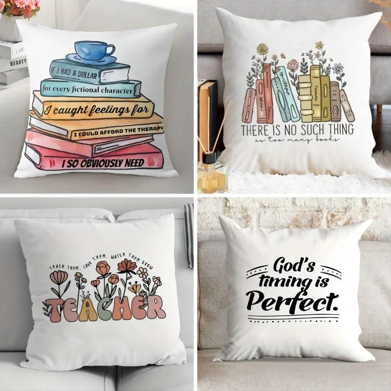 Book Letter Printed Cushion Cover for Home Decor Throw Pillowcase Living Room Lounge Sofa Office Chair Pillows Cover 45cmx45cm