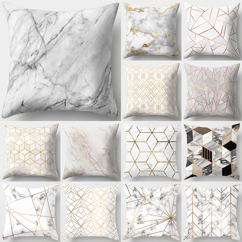 Home Decor Geometric Marble Print Sofa Cushion Decorative Pillowcase Polyester Square Throw Pillow Funda De Almohada
