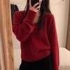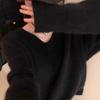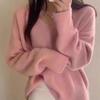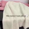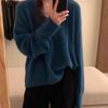 Women's Korean V-Neck Blue Knitted Sweater - Soft, Loose-Fit Autumn/Winter Pullover.