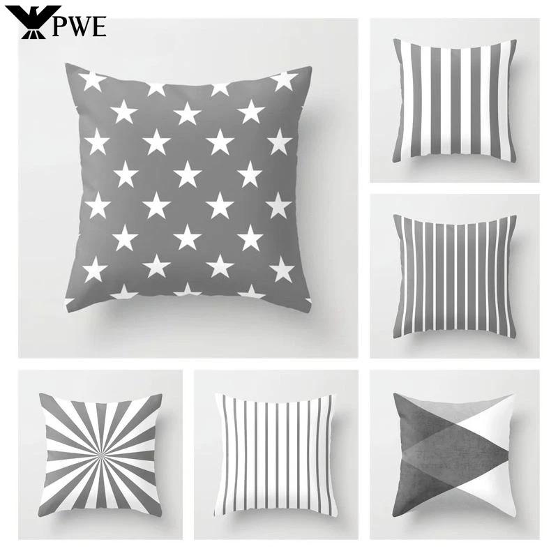 Modern Nodic Style Geometric Gray Pillowscase Polyester Grey Plaids Stripe Cushion Covers Decorative Sofa Throw Pillows