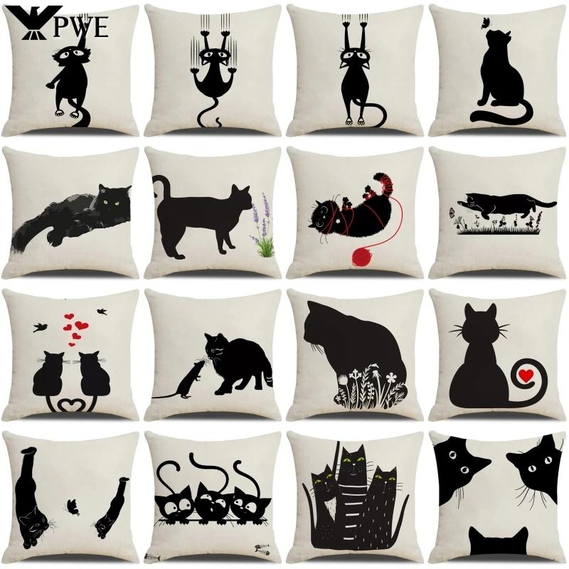Funny Cats Printed Cushion Cover 45x45cm Linen Pillow Case Farmhouse Home Office Decor Throw Pillowcase Pillow Cover for Pillows
