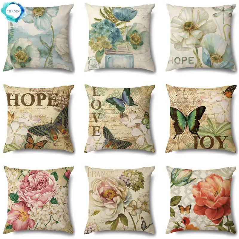 Rose Flower Butterfly Printing Cotton Linen Pillowcase Modern Living Room Decorative Sofa Cushion Cover Home Pillow Cover