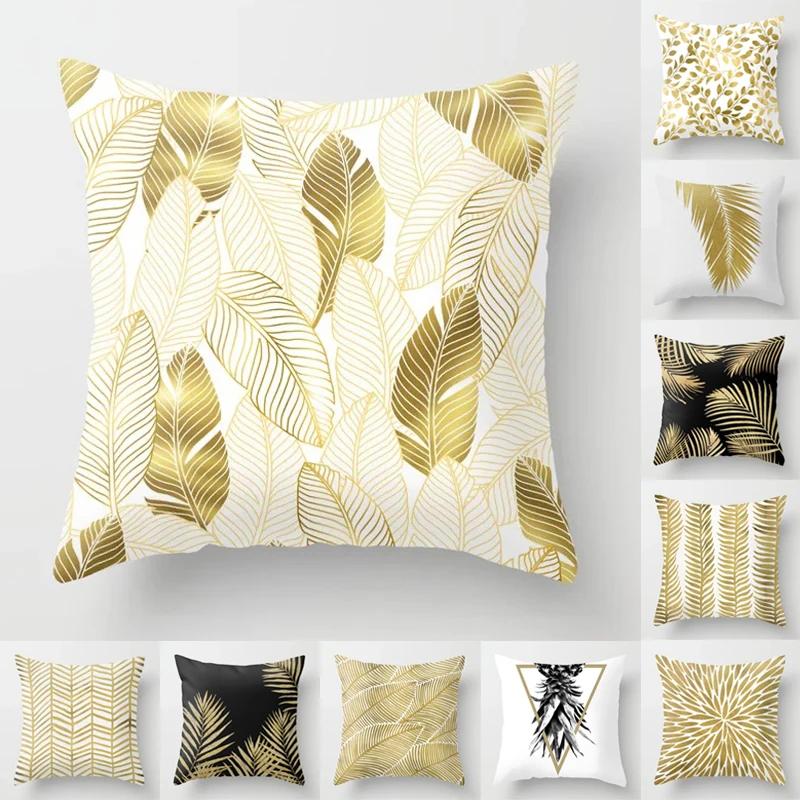 Cushion Cover 45*45cm Golden Leaves Soft Peach Skin Cashmere Throw Pillow Cover Sofa Pillowcase Merry Christmas Home Decor