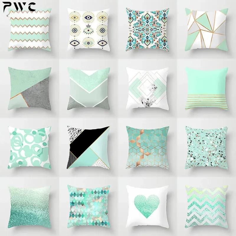 45x45cm Light Blue Green Mint Cushion Cases Modern Geometry Print Boho Decorative Pillowcase Sofa Couch Throw Pillows