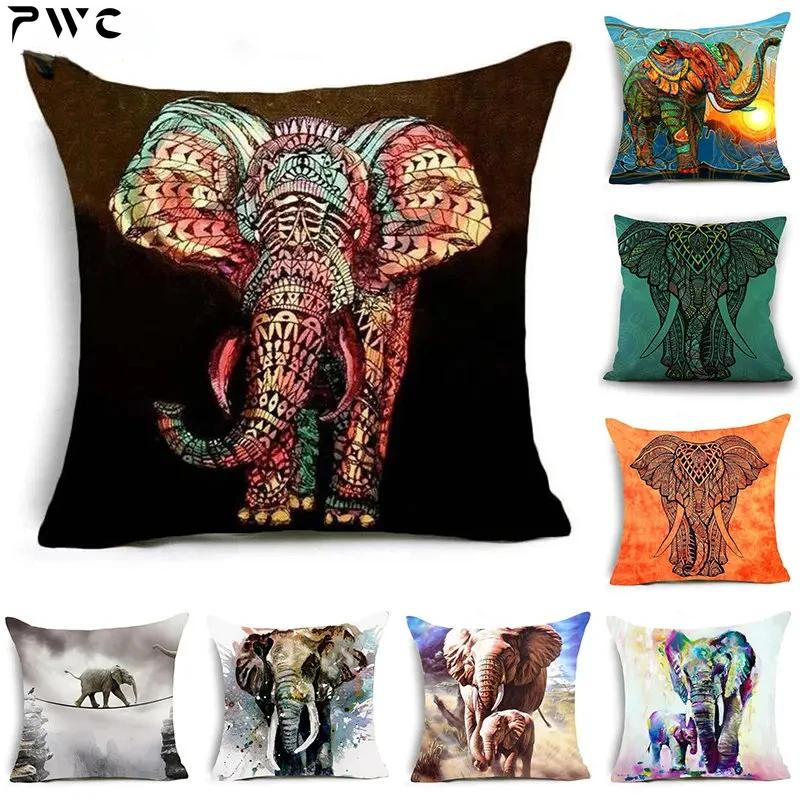 45*45CM Home Decor Pillowcase Sofa Pillowcase Polyester Elephant Print Cushion Cover Indian Style Animal