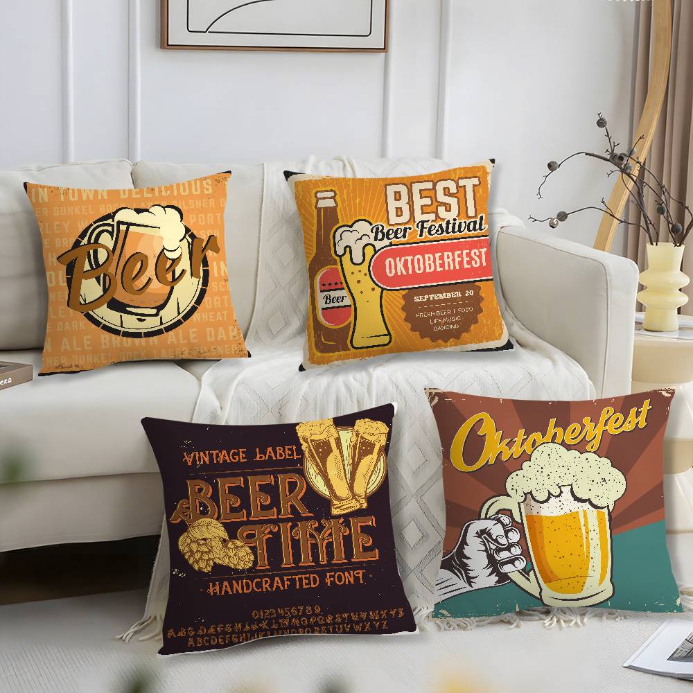 Beer Wine Retro Style Pillow Case Short Plush Print Cushion Cover Square Throw Pillow Covers Sofa Home Decor