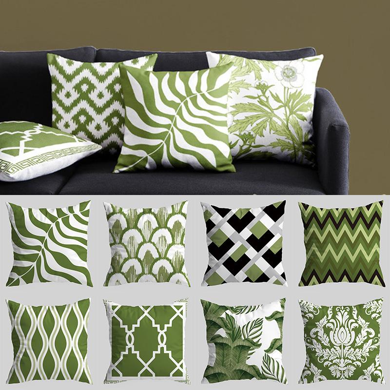 Nordic Style Throw Pillowcase Dark Green Geometric Leaf Sofa Car Decoration Cushion Cover Home Decor