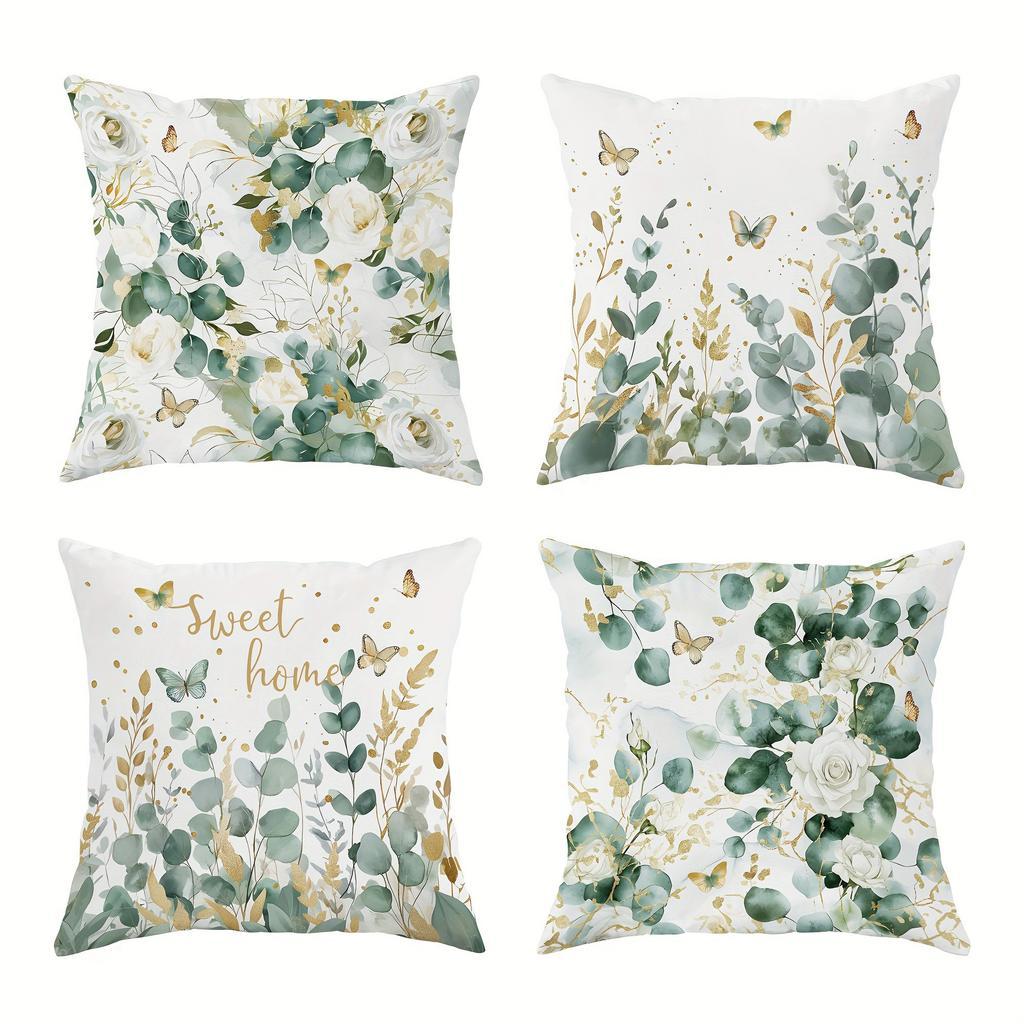 Fresh Eucalyptus & Floral Springtime Pillow CoversLiving Room Sofa Cushion Cover, Soft and Comfortable, Bedroom Room Decoration
