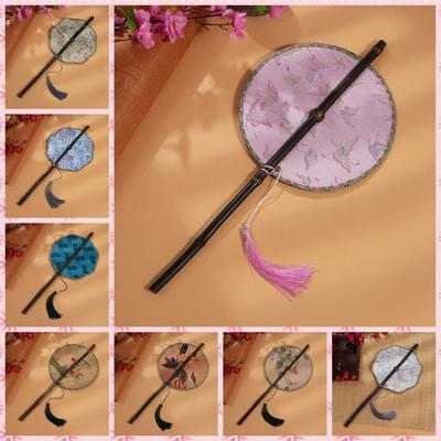 Ancient Chinese Style Chinese Style Round Fan Long Handle with Pendant Embroidery Fan Round Translucent Silk Fan Home Decor