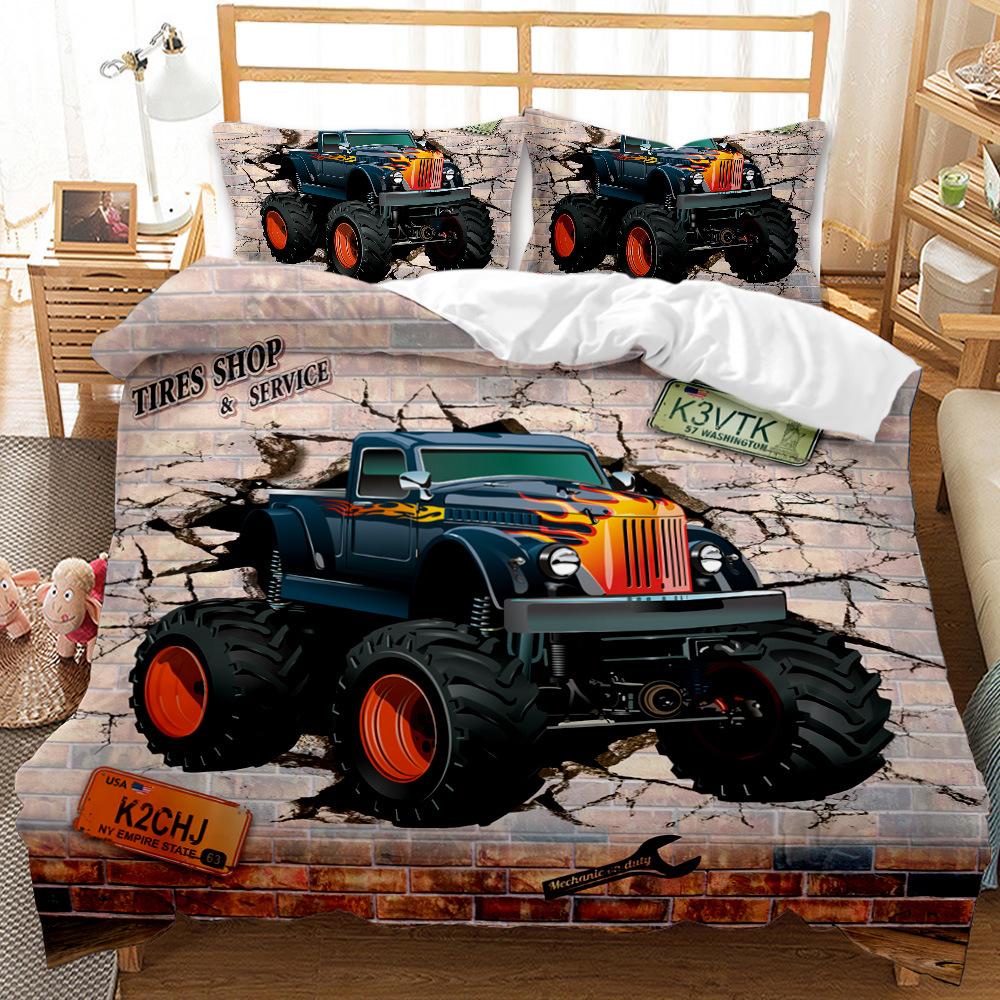 Truck Duvet Cover Set Automobile Blue Monster Pickup Truck Off Road Vehicle Bedding Set For Boys King Size Polyester Quilt Cover
