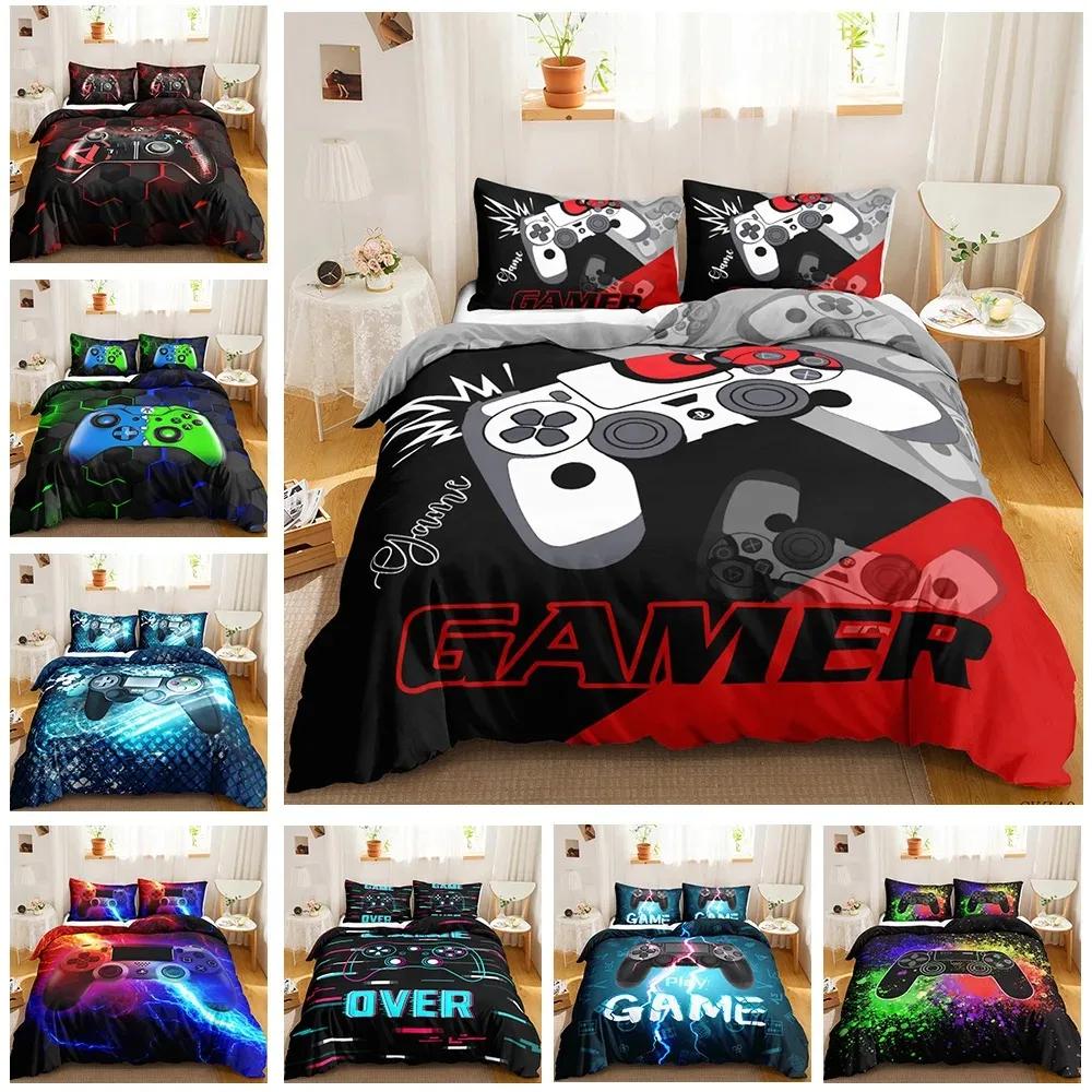 Gamer Bedding Sets For Boy, Gamepad Controller Duvet Cover Set King Size,Video Games Home Decor Comforter Cover For Teen Bedroom