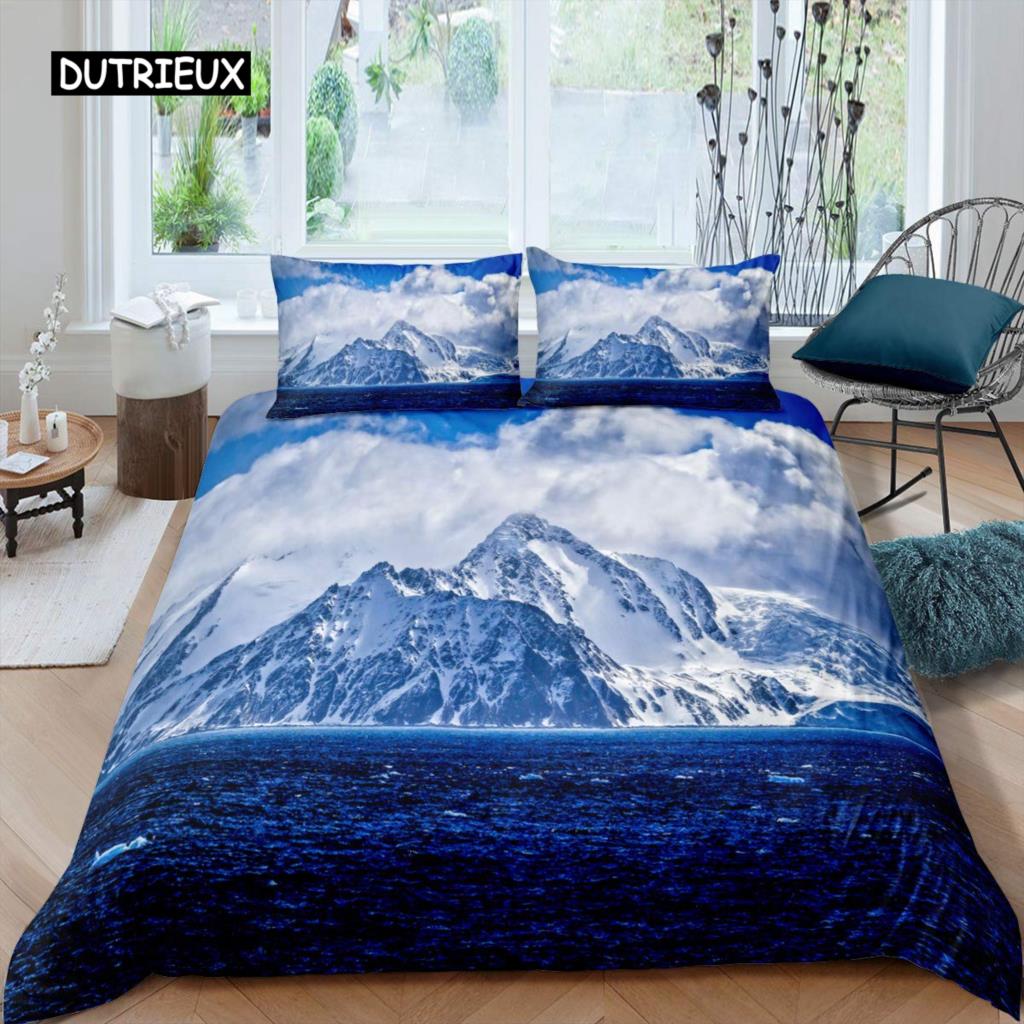Snow Mountain Duvet Cover Set Sea Waves Bedding Set Sea Landscape King Size Comforter Cover Nature Scenery Polyester Quilt Cover