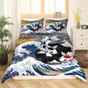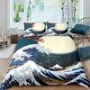 Japanese Wave Duvet Cover Set, Sea Storm In Japan Traditional Drawing Foamy Waves,Bedding Set Full Size,Earth Yellow Dark Blue