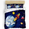 Outer Space Cartoon Cute Spaceship Rocket Duvet Cover With Pillow Case 3Pcs Bedding Set Quilt Cover Double Bed Home Textile
