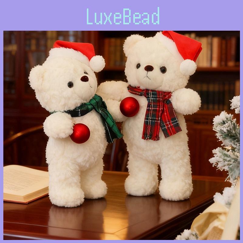 This plush teddy bear features a charming polar bear design, crafted from ultra-soft short pile plush fabric for a gentle touch, it is filled with breathable PP cotton for added comfort and durability. Its festive scarves in various patterns make it ideal for holiday decorations or gifts. Users can easily clean it by wiping with a damp cloth, ensuring long-lasting softness and appearance.