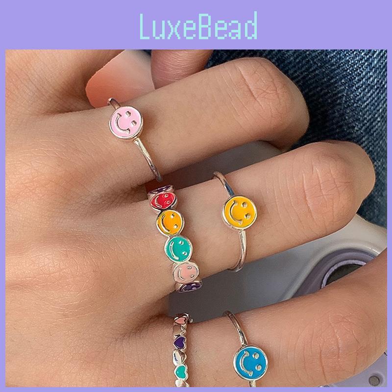 Colorful Drip Glaze Smiley Face Heart Ring For Women Trendy Ins Style Adjustable Fashionable Jewelry
