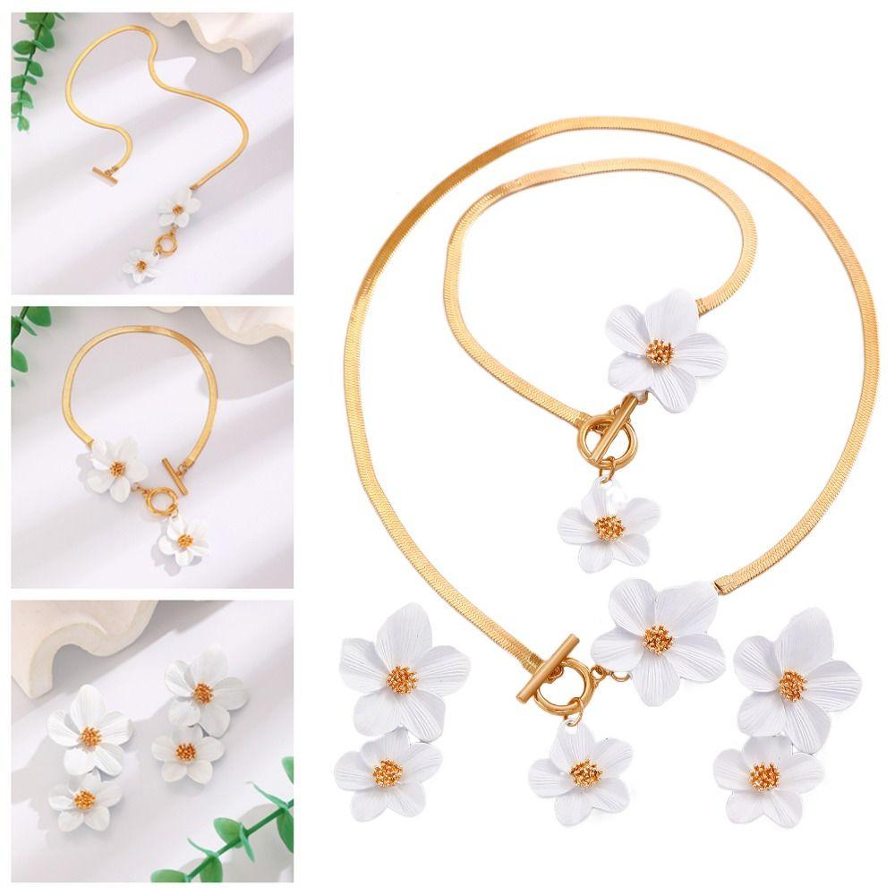 Metal Flower Necklace Earrings Set OT Buckle Pendant Jewelry Suit Vintage Flower Jewelry Set Women