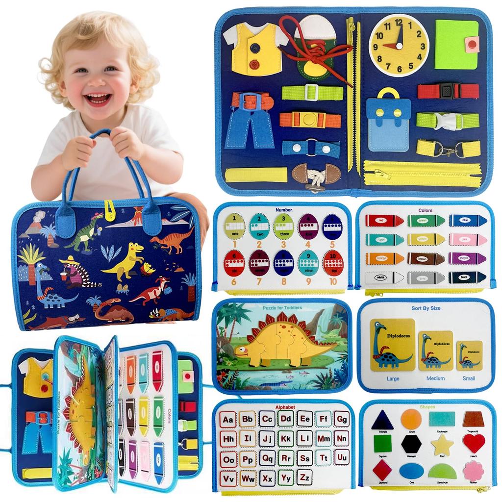 [12 Learning Themes] Learn while you play! Packed with content to stimulate intellectual curiosity, including counting numbers (with English), the 26-letter alphabet, 12 color and 12 shape English vocabulary, dinosaur puzzles, and size comparisons. You can also practice everyday life skills (buttons, shoelaces, zippers, watches, belt clasps, Velcro), developing comprehensive abilities.