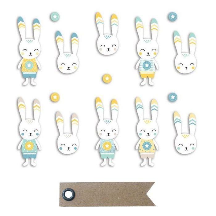 Formes découpées en papier - YOUDOIT - Léonard - 20 lapins - 20 étiquettes kraft - Multicolore
