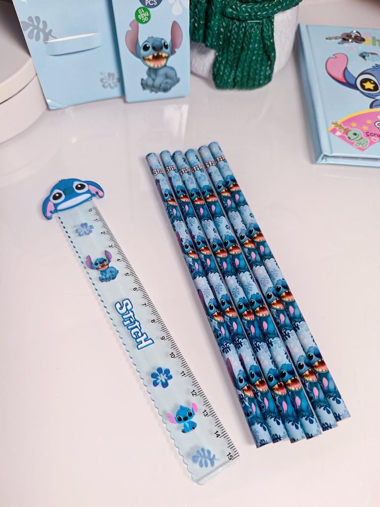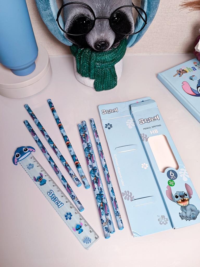 MINISO HB Wooden Lead Pencils Set with Ruler Student Office Stationery Supplies Gift Toy Figure Collection