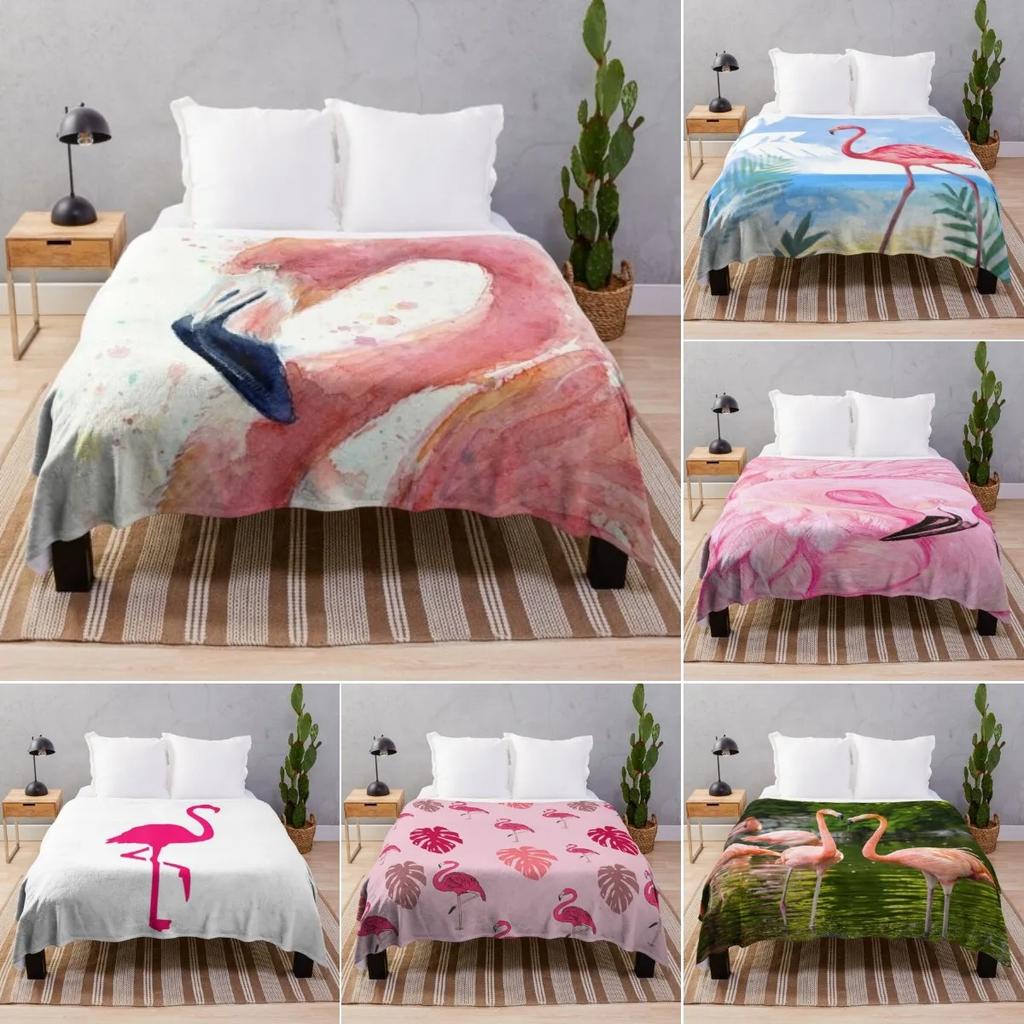 Flamingo Bird Pink Red Wild Animals Flannel Throw Blanket For Sofa Bed Couch Comfortable Warm Lightweight King Queen Full Size