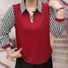 Women Shirt Age-reducing Middle-aged and Elderly Splicing Polo Collar Bottoming Shirt Long-sleeved Top for Women