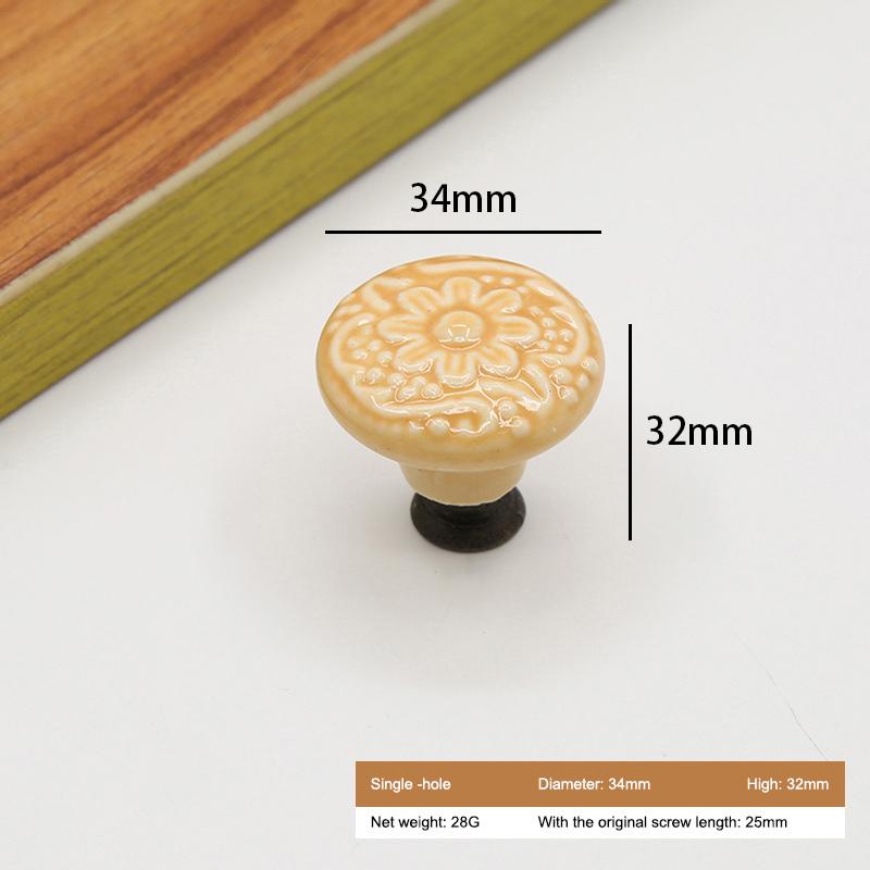 Ceramic Cabinet Drawer Door Knob Cupboard Wardrobe Embossed Round Pull Handle with 25mm Screw