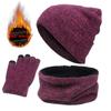 3pcs Winter Warm Women Thick Knitted Beanie Hat,Scarf Gloves Set,Outdoor Cycling Warm 3 Pieces,Unisex Solid Color Autumn Outfits