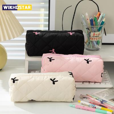 Embroidered Bow Cosmetic Bag Cotton-filled Quilted Large Capacity Makeup Storage Pencil Case Sanitary Napkin Storage Bags