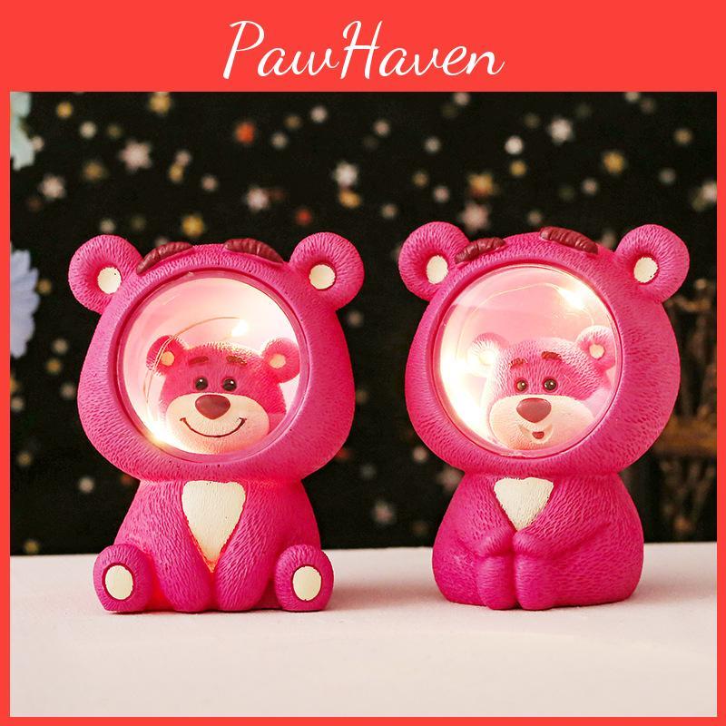 Pink Resin Starlight Bear Figurine Bedroom Atmosphere Night Light Gift For Couples